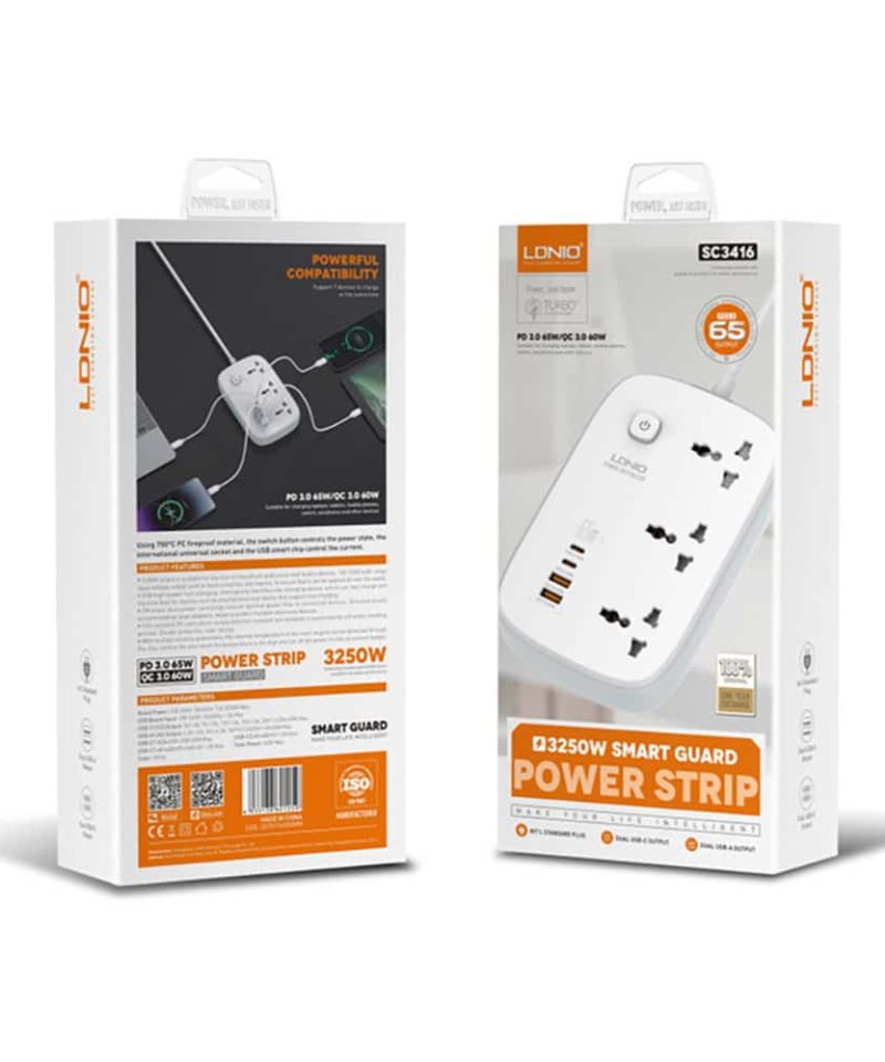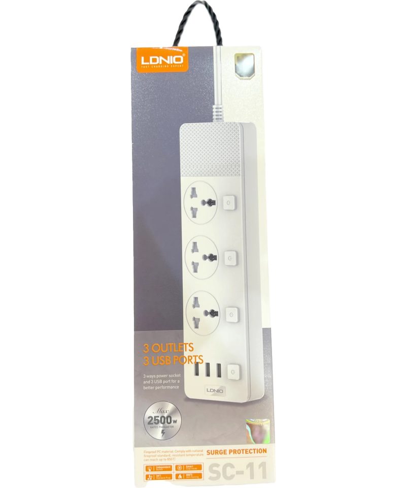 چندراهی برق وشارژر 3 پورت الدینیو مدل LDNIO SC-11