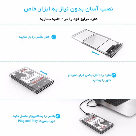 باکس ORICO 2139U3R یک کیس محافظ برای هارد دیسکهای 2.5 اینچی SATA است که برای انتقال دادهها از طریق رابط USB 3.0 طراحی شده است. این باکس از هارد دیسکهای با ظرفیت حداکثر 4 ترابایت پشتیبانی میکند و به شما امکان میدهد هارد دیسک داخلی خود را به یک هارد دیسک اکسترنال تبدیل کنید.بدنه این باکس از پلاستیک شفاف ساخته شده است که علاوه بر محافظت از هارد دیسک، ظاهر جذابی نیز دارد.