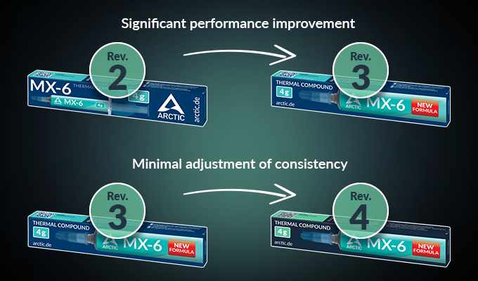 خمیر سیلیکون Arctic MX-6 نسل جدید خمیر حرارتی محبوب MX-4 و MX-5 است که با بهبود چشمگیر در انتقال حرارت و دوام، گزینه‌ای حرفه‌ای برای گیمرها، اورکلاکرها و کاربران حرفه‌ای به شمار می‌رود. این خمیر با ضریب هدایت حرارتی بالا، به شکل مؤثری گرمای CPU یا GPU را به هیت‌سینک منتقل کرده و باعث کاهش دمای کلی سیستم می‌شود و برنده جایزه بهترین خمیر سیلیکون سال ۲۰۲۵ اروپا میباشد.