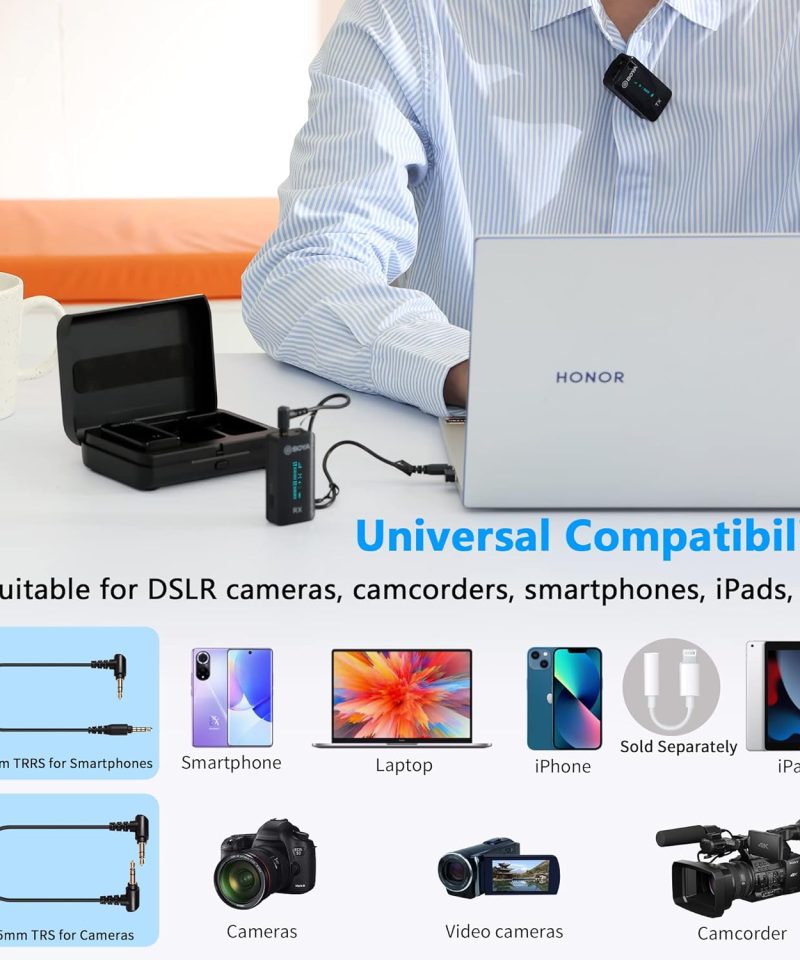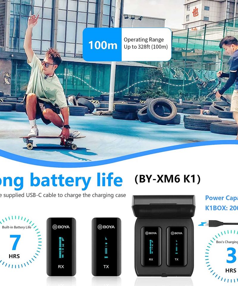 میکروفون یقهای بیسیم BOYA BY-XM6-K1 یک سیستم تکفرستنده و تکگیرنده با فناوری 2.4 گیگاهرتز است که صدایی پایدار و شفاف ارائه میدهد. این مدل با برد 100 متری و فناوری کاهش نویز، برای ضبط در محیطهای داخلی و خارجی ایدهآل است. باتری داخلی 7 ساعته و جعبه شارژ همراه، امکان استفاده طولانیمدت را فراهم میکند. صفحهنمایش OLED اطلاعات سیگنال و باتری را نمایش داده و قابلیت تنظیم گین کنترل دقیقتری روی صدا میدهد. مانیتورینگ زنده از طریق خروجی هدفون، امکان بررسی کیفیت صدا را در لحظه فراهم میکند. این مدل با دوربینها، گوشیهای هوشمند و کامپیوترها سازگار بوده و برای تولید محتوا، مصاحبه و استریم گزینهای ایدهآل است.