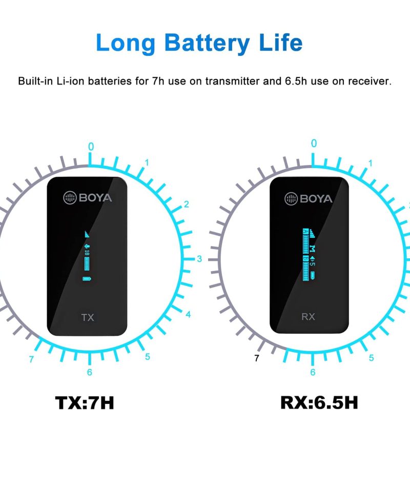 میکروفون یقهای بیسیم BOYA BY-XM6-S2 یک سیستم دو فرستنده و یک گیرنده با فناوری 2.4 گیگاهرتز است که صدایی پایدار و باکیفیت ارائه میدهد. این مدل با برد عملکرد تا 100 متر و فناوری کاهش نویز، برای ضبط در محیطهای باز و داخلی مناسب است. با پاسخ فرکانسی 35Hz – 18kHz و نسبت سیگنال به نویز بالای 84dB، صدایی شفاف و واضح فراهم میکند. صفحهنمایش این میکروفن وضعیت باتری، سیگنال و تنظیمات را نمایش میدهد. باتری داخلی آن تا 7 ساعت عملکرد مداوم دارد. این میکروفون انتخابی ایدهآل برای تولید محتوا، مصاحبه و استریم زنده است.