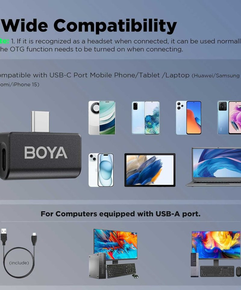 میکروفونهای سری BOYA Omic شامل میکروفونهای یقهای بیسیم دو کاناله با طراحی زیبا و کاربری آسان هستند. این سری با فناوری 2.4 گیگاهرتز برای انتقال پایدار صدا طراحی شده و از دستگاههای مختلف با درگاه Type-C پشتیبانی میکند. ویژگیهایی همچون کاهش نویز، برد بالا و کیفیت صدای حرفهای این سری را برای تولیدکنندگان محتوا، ولاگرها و خبرنگاران ایدهآل کرده است.